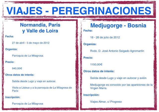 VIAJES – PEREGRINACIONES 2012