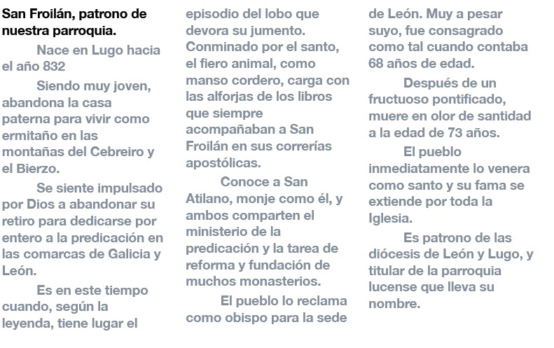 SAN FROILAN, PATRONO DE NUESTRA PARROQUIA